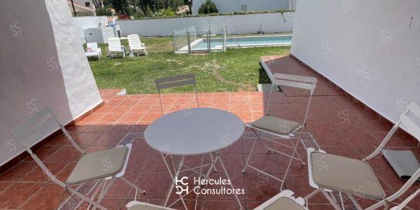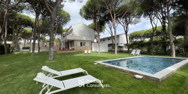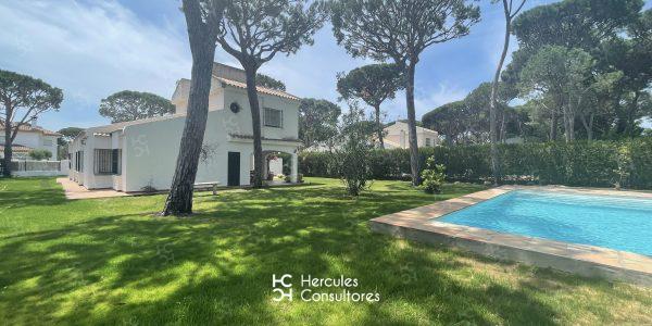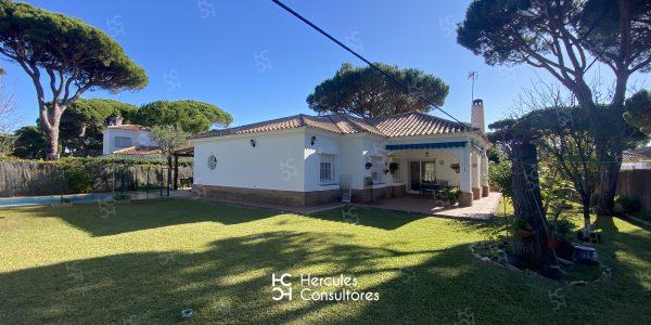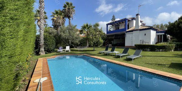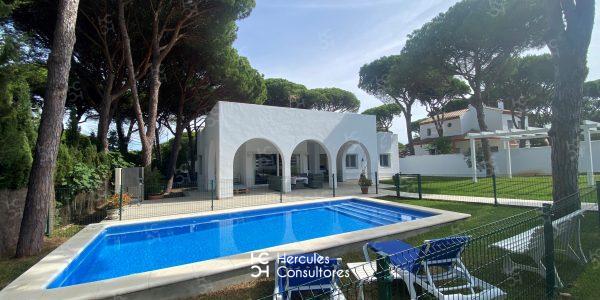 Maravillosa casa situada en la Urbanización de Roche, con piscina y jardín privado. Tiene en el exterior dos duchas de agua fría. Cuenta con barbacoa y sombra en el porche. La casa se encuentra distribuida en dos alturas; Dispone de 5 dormitorios y 4 baños, capacidad 10 personas, cuenta con A/C. La casa se encuentra distribuida en dos alturas; en planta baja dispone de 3 habitaciones con 2 camas de 90 cm cada una, 2 baños con placa de ducha, uno de ellos en suite. En primera planta, dispone de una habitación independiente, con una cama de matrimonio con baño en suite con placa de ducha, dispone de televisión. Cocina y menaje completo. WIFI de fibra. No permite mascota. Disponibilidad: ALQUILADA