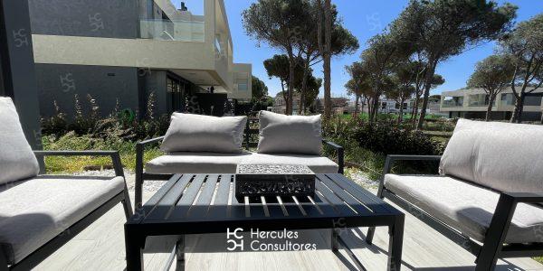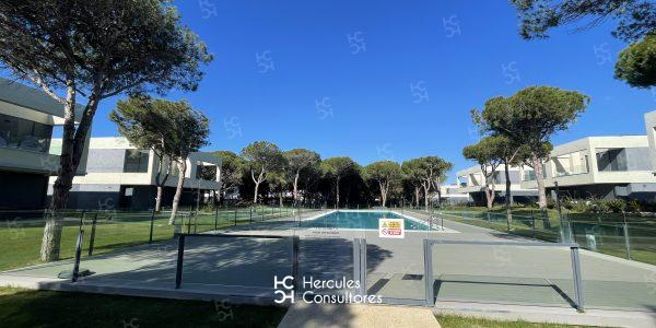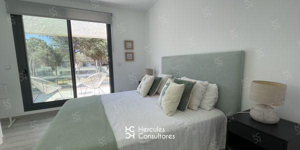 Chalet de nueva construcción situados en la entrada de la Urbanización de Roche, en Calle Inglaterra. Esta distribuido en 2 plantas, cuentan con piscina de la Comunidad. Tienen un porche con vistas a la piscina, con mobiliario exterior. La casa cuenta con 4 dormitorios y 3 baños. Distribución planta baja: recibidor, cocina abierta al salón – comedor, un dormitorio con dos camas individuales de 90 cm, un baño con ducha y un aseo. Primer planta: un dormitorio con cama de 1,60cm, y baño con ducha, y 2 dormitorios con cama nido,( 2 camas de 90cm) y un baño con bañera. En cocina dispone de : Horno, lavadora, lavavajillas, microondas, y placa de vitrocerámica. Dispone de WIFI. Cuenta con instalación de A/C. Disponibilidad: ALQUILADA
