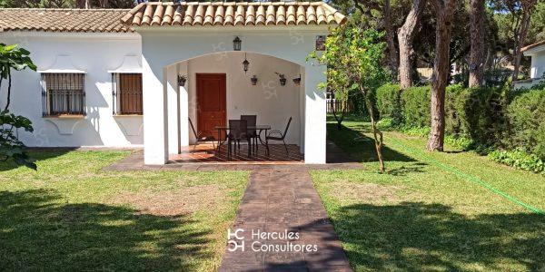 Chalet distribuido en una sola planta, con piscina y jardín propio, dentro de la Urbanización de Roche. La casa cuenta con porche amueblado,( mesa y sillas) en la parte delantera. Dispone de 3 dormitorios,( uno con cama de 1.35 cm, otro con literas, y el último con 2 camas de 1.05cm unidas), y un baño con ducha. En el exterior de la casa cuenta con otra ducha. Dispone de gas butano, microondas, lavadora, frigorífico, lavavajillas y horno. Cuenta con alarma. El propietario estaría dispuesto a contratar WIFI en caso necesario.