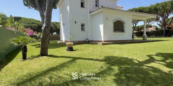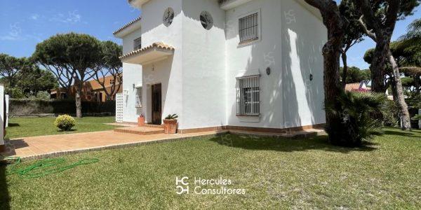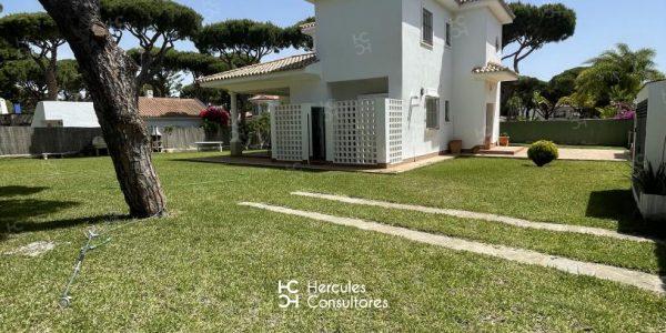 Magnífico chalet con jardín privado dentro de la Urbanización de Roche. La casa cuenta con capacidad para 8 personas y esta distribuida en dos plantas. La planta baja, con recibidor, cocina, patio tendedero, aseo , salón- comedor, y una habitación con cama de 1,35 cm. con baño en suite con ducha. La primera planta, dispone de 2 habitaciones con dos camas de 90 cm. con baño con bañera, y una habitación con cama de 1,50 cm. con baño en suite con ducha. Tiene un porche sombreado con barbacoa. Dispone de WIFI, cocina y menaje completo. Mascota: debe consultar con la inmobiliaria. Disponibilidad: ALQUILADA