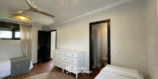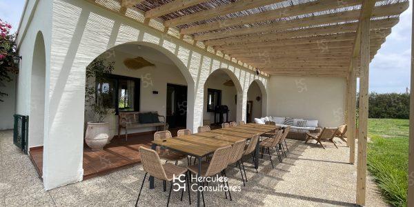 Magnifica casa rural en venta a tan solo 5 minutos de la Urbanización de Roche, (Carril Padre Ramírez), con capacidad para 16 personas. Cuenta con 7 dormitorios, y 7 baños. Todas las habitaciones son independientes. La vivienda esta distribuida en una sola planta de la siguiente forma: un dormitorio con 2 camas de 90 cm. unidas, con baño con ducha y ropero empotrado de dos puertas; 2 habitaciones independientes unidas cada una con su baño con ducha , una litera, y 2 camas de 90 cm. y otra con cama de 1,50 cm; una habitación independiente con una cama de 1,35 cm. con zona de estar y baño con ducha; una habitación independiente con cama de 1,50 cm. vestidor, y baño con ducha; una habitación independiente con cama de 1,50 cm. sofá con chimenea y baño con ducha; y por último una habitación independiente con una cama de 1,50 cm. y una cama de 90 cm. y baño con ducha. Tienen en común piscina, con ducha exterior, zona ajardinada, porche, (completamente amueblado, con mesa grande y sillas, además de zona de estar con sofás), salón comedor, y cocina. Cada una de las habitaciones cuenta con ventilador de techo. En cocina cuentan con horno, microondas, y doble frigorífico. Menaje completo. Dispone de WIFI.