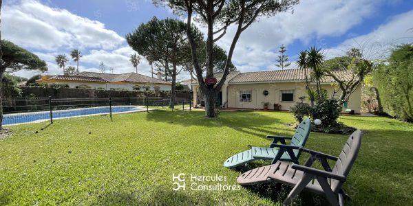 Disfruta de Villa Águila para pasar tus vacaciones en Roche, con piscina vallada, ducha exterior, y espléndido jardín para disfrutar las tardes de verano, dispone de porche con mobiliario exterior, ( mesa y sillas). La vivienda cuenta con recibidor, salón comedor con chimenea, con salida al porche, cocina independiente,  2 habitaciones con cama de 90 cm cada una, 1 habitación con cama de 1,50 cm, con baño en suite con bañera, y un baño con placa de ducha. Dispone de A/C con salida de aire en el salón, además en una de las habitaciones  tiene un ventilador de techo. Agua caliente con gas butano. Cocina y menaje completo, cuenta con cafetera italiana dolce gusto para los más cafeteros Dispone de WIFI. Mascota; a consultar con la inmobiliaria.