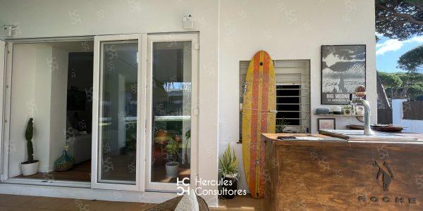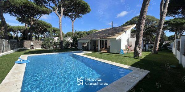 Maravilloso chalet situado en la Urbanización de Roche, con piscina privada y bonito jardín donde podrás disfrutar de tardes en familia con su terraza amueblada, mesa y sillas y toldo en el frontal de la terraza, además de una pequeña barra para servir un refresco los días más calurosos. Posibilidad de aparcar un coche dentro de la parcela. La vivienda esta dispuesta en una sola planta, que cuenta con una habitación con cama de ( 1,35/ 1,50 cm), con baño en suite con placa de ducha, dos habitaciones con 2 camas de 90 cm. cada una y un baño con placa de ducha. salón comedor, con chimenea, TV de plasma, y puerta que comunica con el porche. La casa cuenta con A/C con salida de aire en cada una de las habitaciones. Dispone de WIFI. Cocina y menaje completo. No admite mascotas dentro de la casa. Disponibilidad a consultar